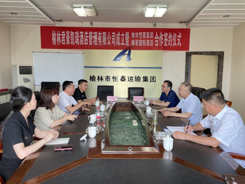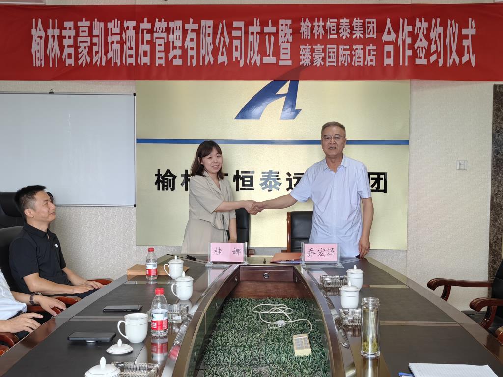 2023年7月11日上午,榆林君豪凱瑞酒店管理有限公司成立暨榆林市恒泰集團(tuán)與西安臻豪國際酒店有限公司合作簽約儀式在集團(tuán)公司總部大樓8樓會議室舉行。恒泰集團(tuán)董事長喬宏澤、總經(jīng)理萬恒山、總經(jīng)理助理葉希云,立豪集團(tuán)董事長桂志明、辦公室主任袁方,西安臻豪國際酒店有限公司總經(jīng)理桂娜,江蘇晗月酒店管理有限公司開發(fā)總監(jiān)孟祥輝等人出席了簽約儀式,共同見證這一時(shí)刻。