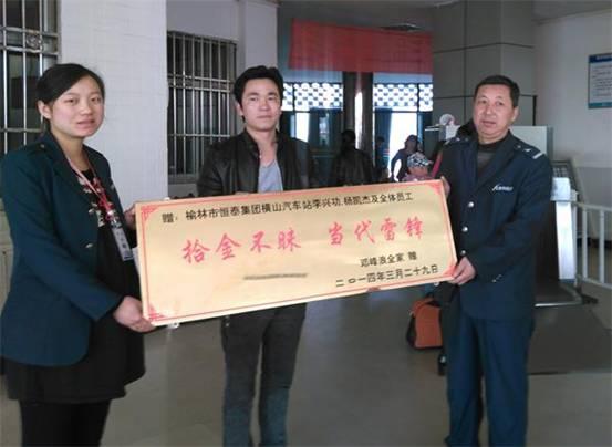 陽春三月,陣陣春風(fēng)和煦而來, 3月29日早8時許,恒泰集團橫山汽車站的員工們都在各自的崗位上忙碌著,這時,候車室進來一位不同尋常的年輕人,他雙手捧著一塊熠熠發(fā)光的金色牌匾,上面寫著紅色的大字“拾金不昧 當(dāng)代雷鋒”,站領(lǐng)導(dǎo)趕忙迎上前去詢問,才知道發(fā)生了什么事情。