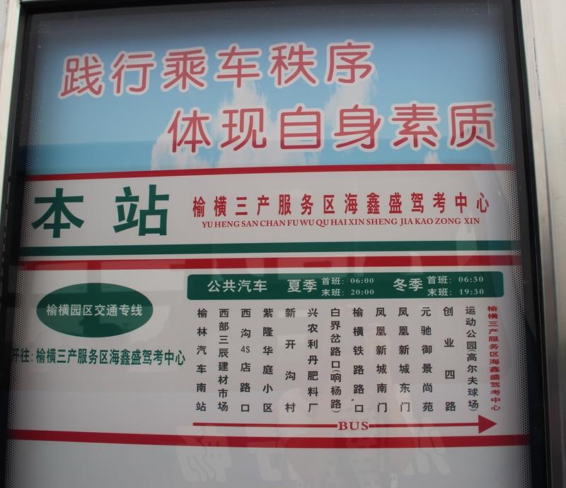 此條城鄉(xiāng)公交線路是在橫山縣政府牽頭下,經(jīng)市、縣管理部門多方協(xié)調(diào)后,由榆林市道路運輸管理處許可的調(diào)整班線,從榆橫三產(chǎn)服務(wù)區(qū)經(jīng)西部三辰到榆林汽車站線路全長32.6公里,途徑榆橫三產(chǎn)服務(wù)區(qū)海鑫盛駕考中心、元馳御景尚苑、鳳凰新城、新開溝村、紫隆華庭小區(qū)、西部三辰建材市場等站點,運力從原橫山經(jīng)馬扎梁至榆林普通線路調(diào)整6臺小型高一級客車運營。每天首班發(fā)車時間為早6:00點,末班收車時間為晚20:00點,班次間隔為每20分鐘發(fā)一班,實行無人售票,暫不支持刷卡。票價實行政府補貼票價,全程每人次票價為2元,其中榆橫三產(chǎn)服務(wù)區(qū)到西部三辰區(qū)段1元,西部三辰到榆林汽車站區(qū)段1元,由橫山縣政府和榆林經(jīng)濟技術(shù)開發(fā)區(qū)定額補貼,補貼期限暫為一年。