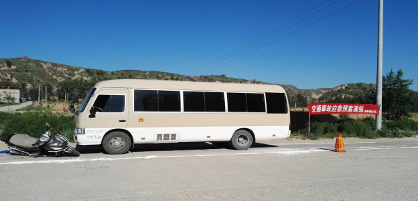 本次演練模擬情景在神木縣城關(guān)鎮(zhèn)石窖院村,一輛摩托車在駛出岔路口時(shí),與城市道路上一輛疾馳而過(guò)的客運(yùn)車相撞,導(dǎo)致摩托車司機(jī)受輕傷、客車輕微受損及摩托車嚴(yán)重受損的交通事故的發(fā)生。事故發(fā)生后,集團(tuán)公司職能部門、汽車站和客運(yùn)公司及時(shí)啟動(dòng)車輛交通事故應(yīng)急預(yù)案,出動(dòng)了綜合協(xié)調(diào)、疏散警戒、后勤保障和安撫善后4個(gè)救援組,按照演練方案確定的處置程序和措施,對(duì)突發(fā)交通事故中的報(bào)案、傷員搶救、事故現(xiàn)場(chǎng)處理、事故調(diào)查等多個(gè)環(huán)節(jié)進(jìn)行了演練,重點(diǎn)檢驗(yàn)了駕駛員在事故發(fā)生時(shí)的應(yīng)急處置、報(bào)警方式、職能部門及基層單位的接警處置方式、協(xié)調(diào)配合能力、啟動(dòng)應(yīng)急措施的反應(yīng)能力和事故現(xiàn)場(chǎng)正確處置的應(yīng)急能力。