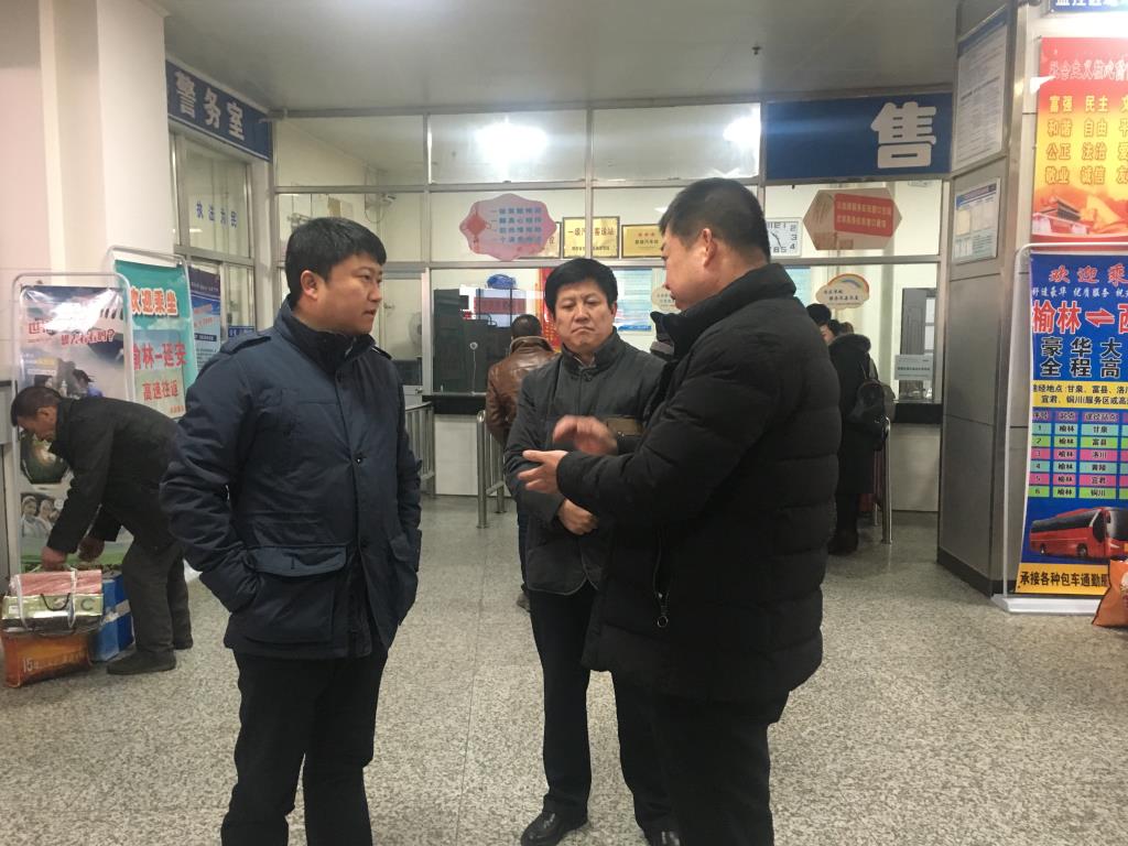 1月27日上午,陜西省道路運(yùn)輸管理局副局長(zhǎng)曹鑫一行在榆林市道路運(yùn)輸管理處處長(zhǎng)蘇來(lái)鷹等領(lǐng)導(dǎo)的陪同下來(lái)集團(tuán)公司安全檢查。曹局長(zhǎng)一行查看了榆林汽車(chē)站實(shí)名制售票、“三品”檢查等情況,隨后檢查了榆林片區(qū)警示教育活動(dòng)室和集團(tuán)公司監(jiān)控中心,通過(guò)汽車(chē)站聯(lián)網(wǎng)視頻系統(tǒng)抽查了部分汽車(chē)站安檢情況并詢(xún)問(wèn)了陜西省第三方平臺(tái)監(jiān)測(cè)數(shù)據(jù)推送情況。曹局長(zhǎng)強(qiáng)調(diào)“春運(yùn)”即將來(lái)臨,公司要嚴(yán)格“三品”檢查和“五不兩確?!卑踩嬷穆鋵?shí),充分利用省第三方監(jiān)測(cè)平臺(tái)統(tǒng)計(jì)數(shù)據(jù),進(jìn)一步強(qiáng)化車(chē)輛動(dòng)態(tài)監(jiān)控管理,堅(jiān)決遏制重特大事故發(fā)生。集團(tuán)公司安技部部長(zhǎng)吳志良、榆林汽車(chē)站站長(zhǎng)李建國(guó)進(jìn)行跟蹤匯報(bào)。(圖文侯勇鵬)