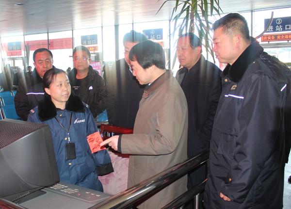1月28日8時(shí)30分,榆林市副市長張勝利帶領(lǐng)市政府辦、市交通、消防等部門負(fù)責(zé)人蒞臨我公司進(jìn)行春運(yùn)安全檢查和春節(jié)慰問工作,集團(tuán)公司總經(jīng)理王銀、副總經(jīng)理張繼孝、總部相關(guān)部門及榆林汽車站負(fù)責(zé)人陪同檢查。